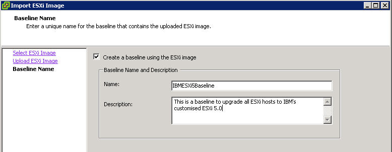 OK, begin by going to VMware Update Manager (VUM), selecting ESXi Images and importing the IBM  customised image ISO: