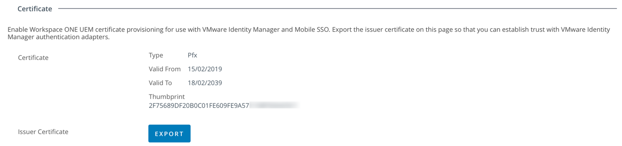 certificate February 17, 2019 Return to: Setting up Workspace ONE Single Sign-on (SSO) and Conditional AccessFull resolution (1252 × 295) Image navigation Previous Image Next Image