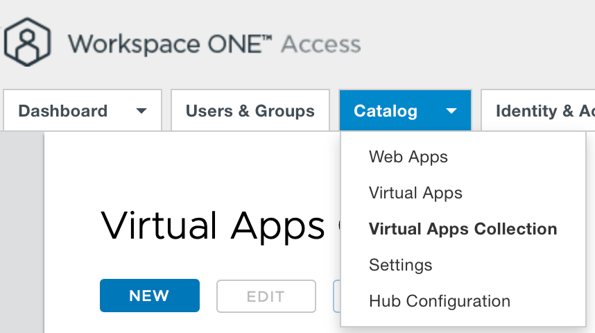 1. From the Access Admin console, click on Catalog – Virtual Apps Collection
