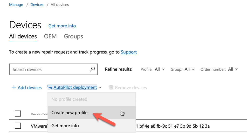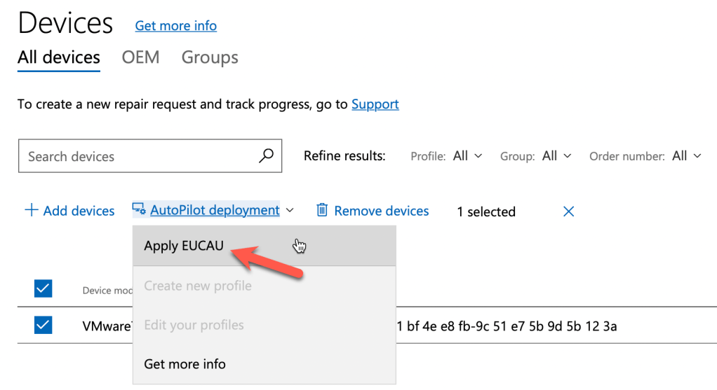 Then make sure you’ve applied this Autopilot profile to all of your test devices as shown: