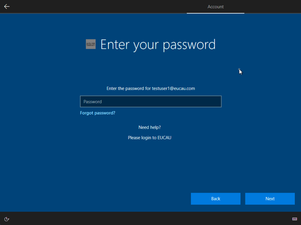 I then took a VMware snapshot before starting the virtual machine. The difference this time is that instead of the Windows OOBE login, my test workstation was recognised as my corporate device so it immediately prompted me for my userid: