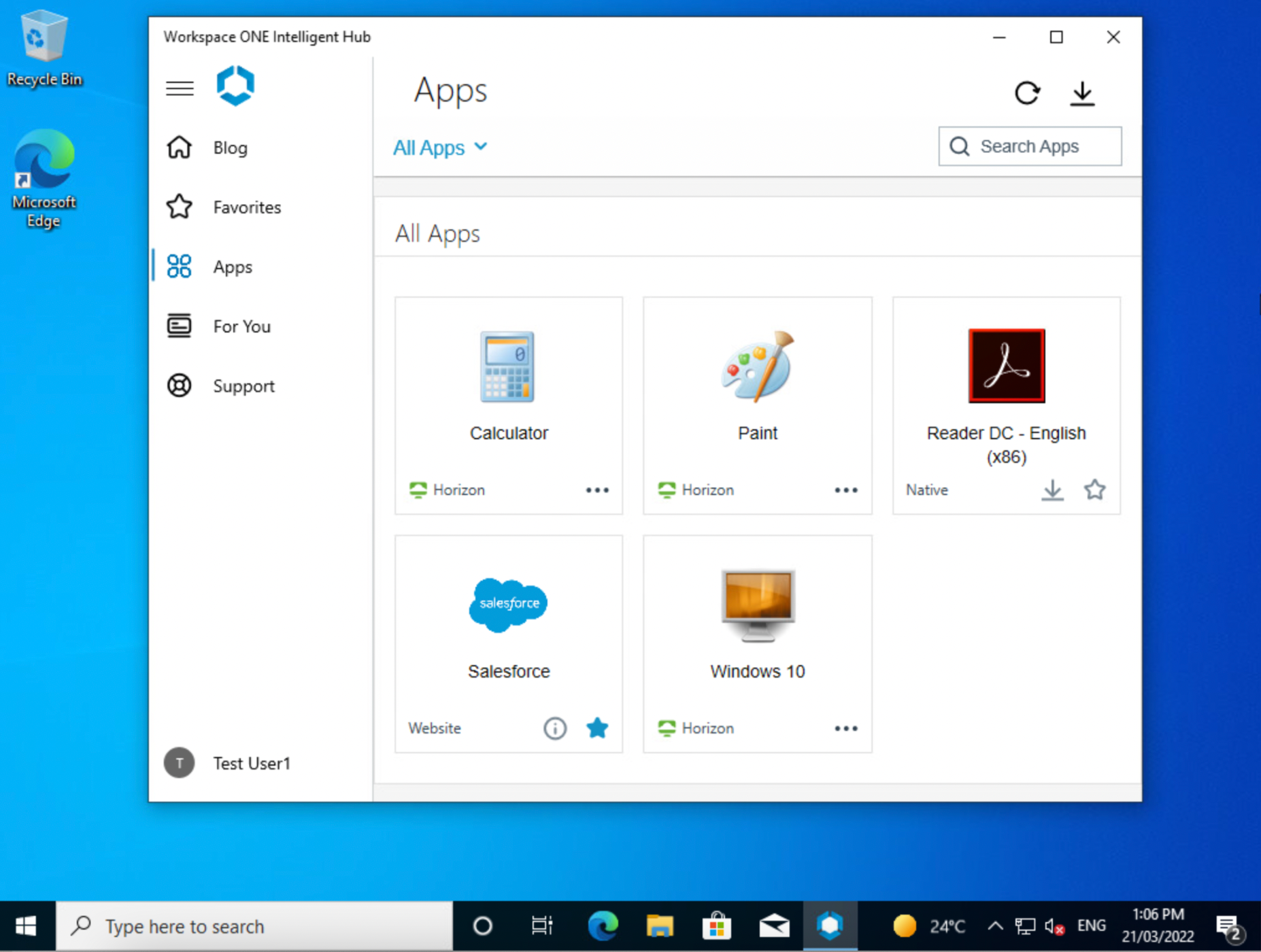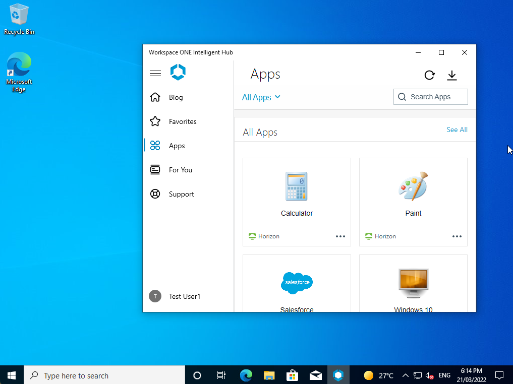 You’ll be then guided through a number of screens and to also setup a Windows hello PIN. You will then see the Windows desktop as shown and the Intelligent Hub app catalog as shown.