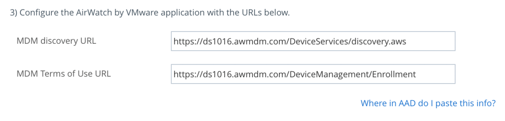 The MDM discovery URL and MDM Terms of Use URL are transposed between UEM and Azure AD (see below from my lab). Just so you’re aware!