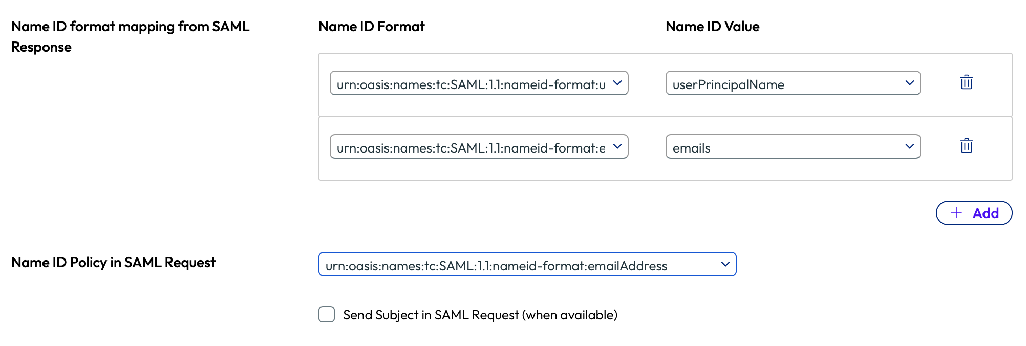 urn:oasis:names:tc:SAML:1.1:nameid-format:unspecified to userPrincipalName