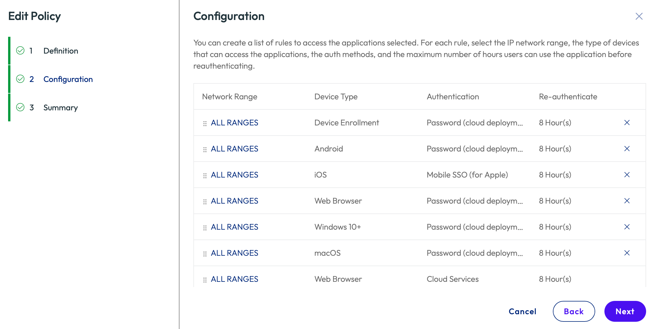 Within the default policy click Next. Select All Ranges next to the Web Browser policy type.