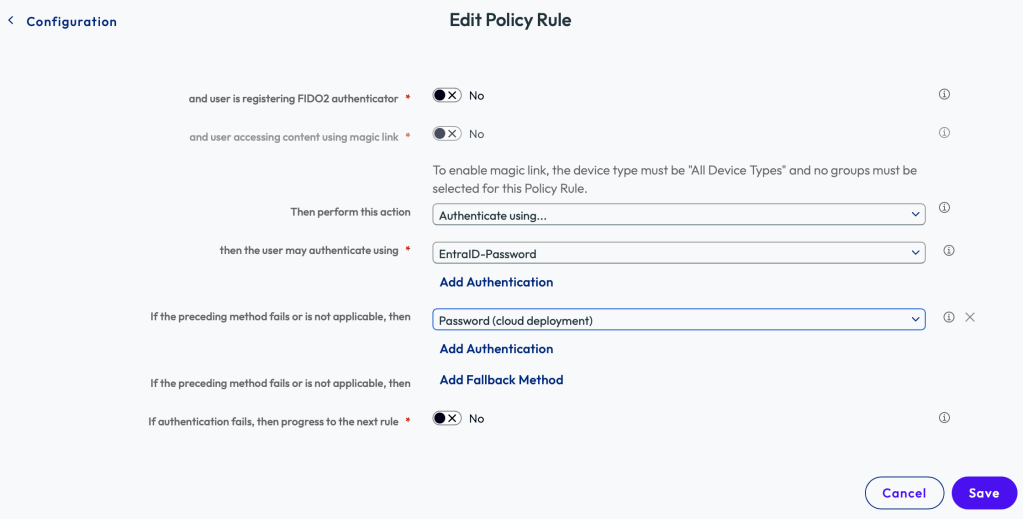 25. Change the policy to AzureAD-Password as the primary authentication, with an optional fall back method.