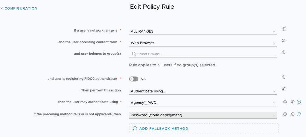A fallback authentication method could be Password (cloud deployment) so that agency staff if they are away from the Agency network can still access MSP applications. They will then need to login with their userid/password.