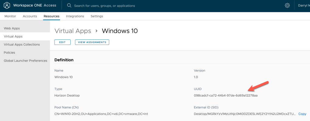 Within Workspace ONE Access, go to ResourcesVirtual Apps Collections – Click the Horizon pod and click Edit – click on Pod and Federation – Click the Horizon Connection Server – ensure True SSO is enabled as shown: