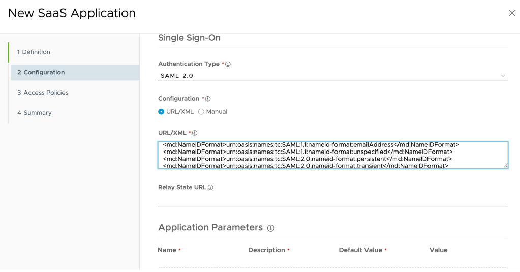 In the Agency Access tenant, create a new SAML 2.0 based Web Application called MSP Access Tenant (or suitable name)