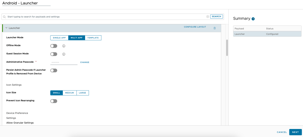 Workspace ONE Launcher lets IT administrators design a custom home screen for Android devices. You can easily layout your applications and branding using the Workspace ONE UEM admin console. Once set up, the Launcher automatically replaces your regular home screen and enforces IT policies for both the device and apps. It’s designed with frontline workers in mind, but its flexible design can be adapted to fit any company’s needs.
