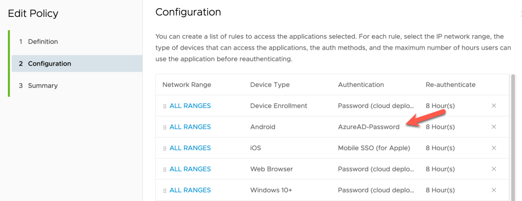 It’s important to set the Authentication policy for Android devices to Okta as shown in my lab:
