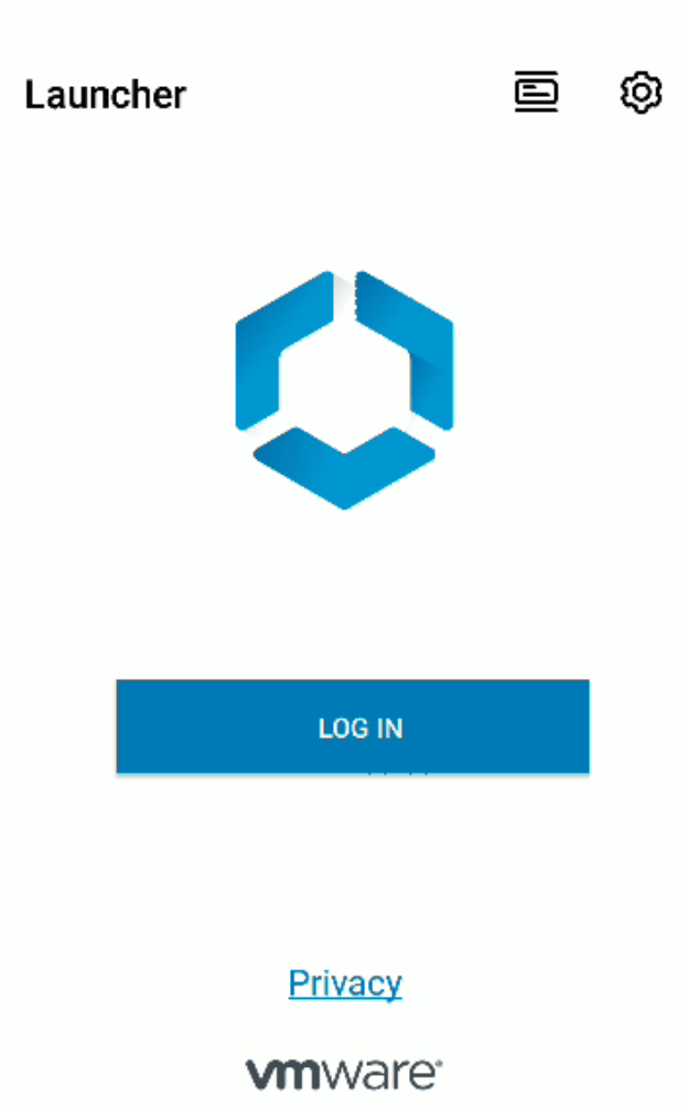On your test device, the Launcher will start automatically. If CICO has been enable correctly you should see a blue button labeled Log In as shown: