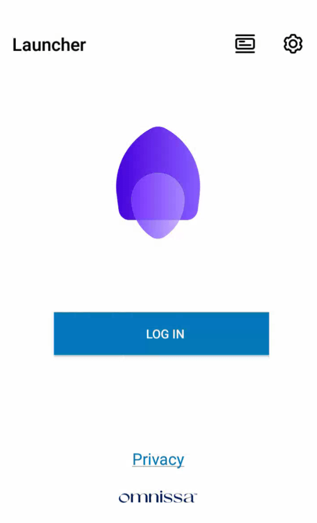 On your test device, the Launcher will start automatically. If CICO has been enable correctly you should see a blue button labeled Log In as shown: