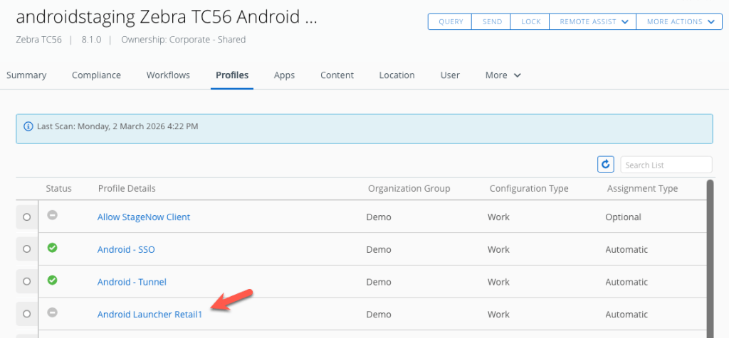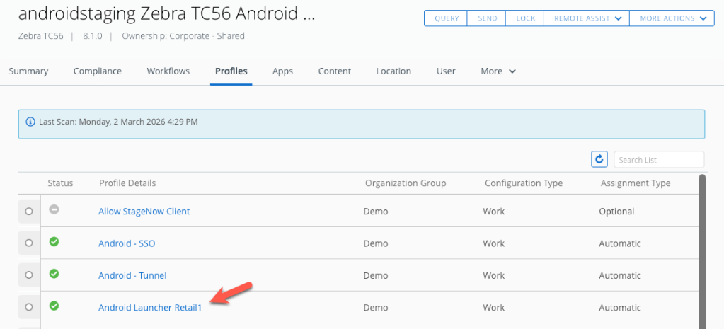 Before proceeding to the next task, I’d recommend enrolling a test Android device in work managed mode using the androidstaging account.