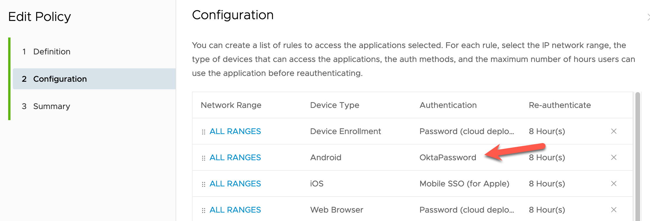 It’s important to set the Authentication policy for Android devices to Okta as shown in my lab: