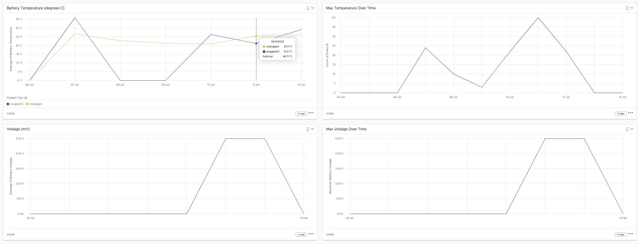 - Battery related use cases such as voltage information, not plugged in, abnormal charge rates